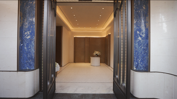 预接待厅的「威尼斯白+爵士白石材拼花」地面、E9级进口水晶灯,以手工匠艺致敬奢华质感。